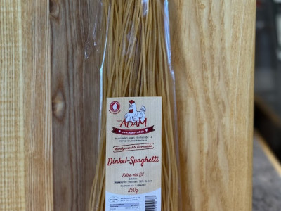 Diese Spaghetti bestehen aus Dinkelgrieß und frischen Eiern.